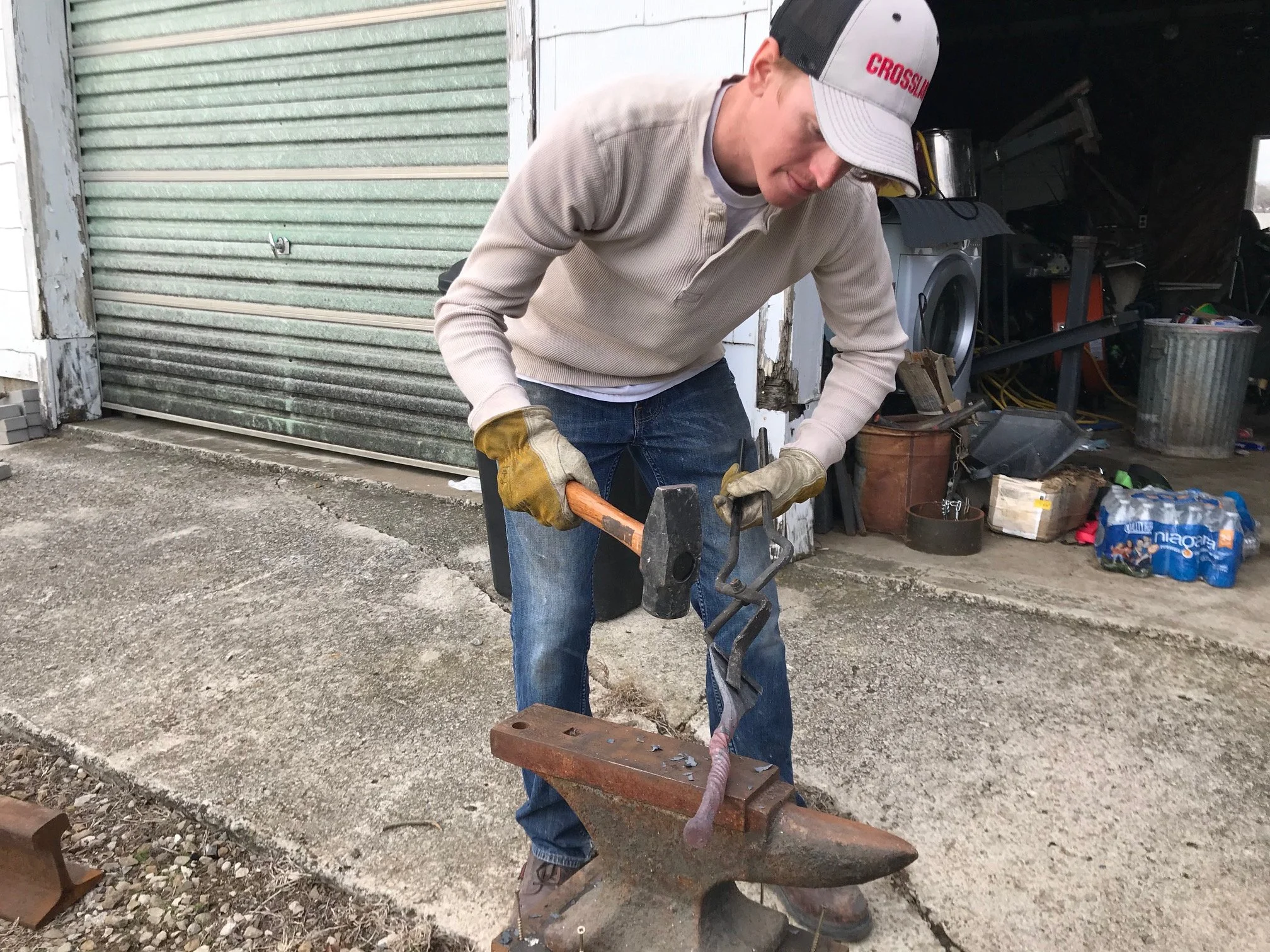 Shortly out of welding school I went to work for Crossland Construction as an ironworker and soon became in charge of quality control for our crew. Which, for someone fresh out of welding school, was a daunting task to quality check welds from people who had been at it for decades. My boss seemed to trust my judgement, and I soon discovered that he also shared my fascination with blacksmithing. Out at his place we had the occasional hammer-in where we would make tools for roofing and figure out the nuances of forge welding.